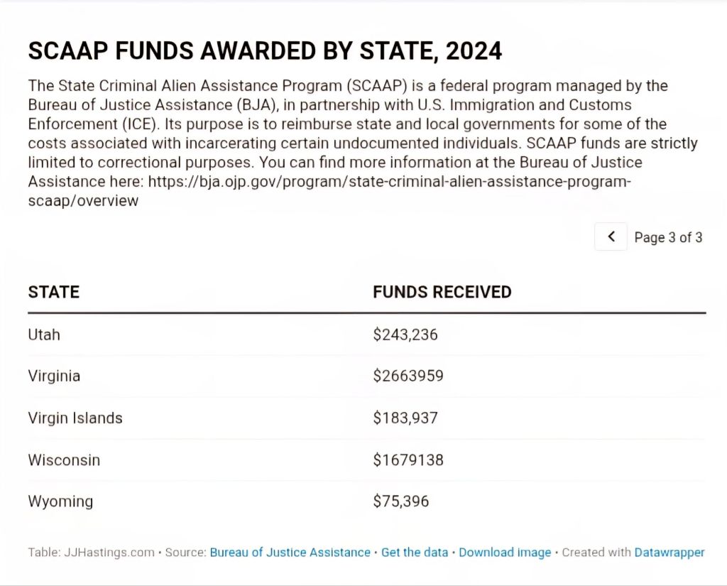 “The State Criminal Alien Assistance Program (SCAAP) is a federal program managed by the Bureau of Justice Assistance (BJA), in partnership with U.S. Immigration and Customs Enforcement (ICE). Its purpose is to reimburse state and local governments for some of the costs associated with incarcerating certain undocumented individuals. SCAAP funds are strictly limited to correctional purposes.”