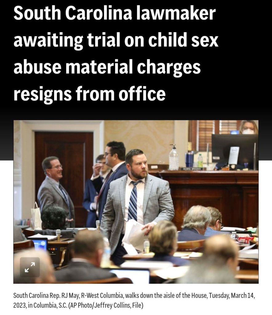 RJ May served as a Republican lawmaker in the South Carolina State House. He was formally charged with distributing child sexual abuse material (CSAM).